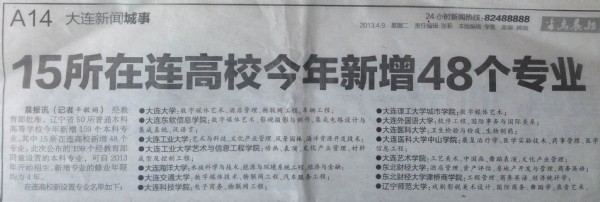 据《半岛晨报》4月9日报道,今年获批开设文化产业管理专业的辽宁省内高校除我院外,还有大连工业大学。