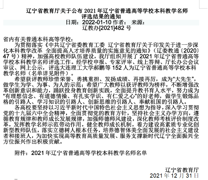 2021年省级教学名师公示